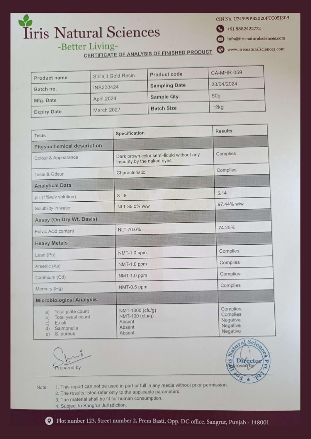 Item Form Resin Manufacturer IIRIS Naturals Science Pvt ltd Item Package Quantity 1 Package Information Box