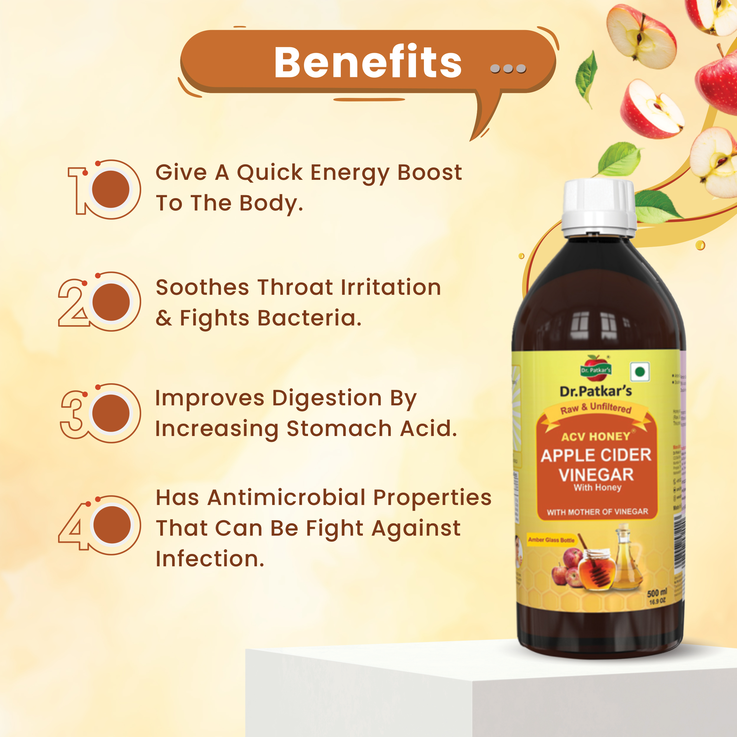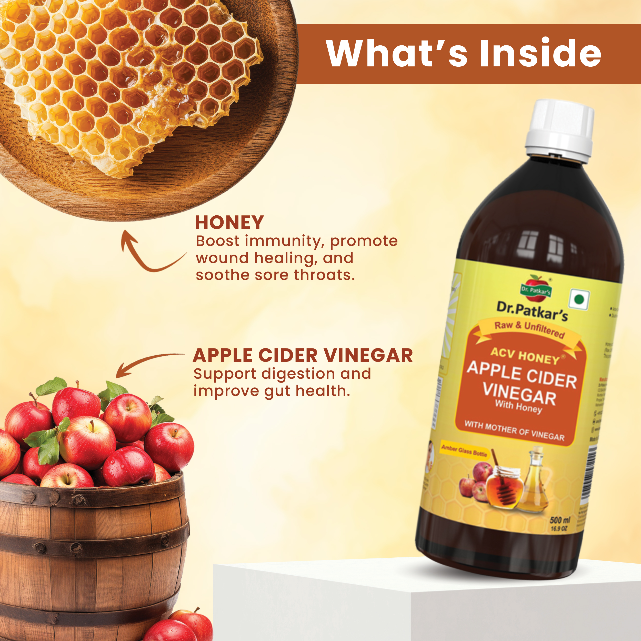 Dr. Patkar’s Apple Cider Vinegar With Honey | Unfiltered & Undiluted | Suitable for Weight loss with Improved Immunity | Weight management (With Mother) 500ml