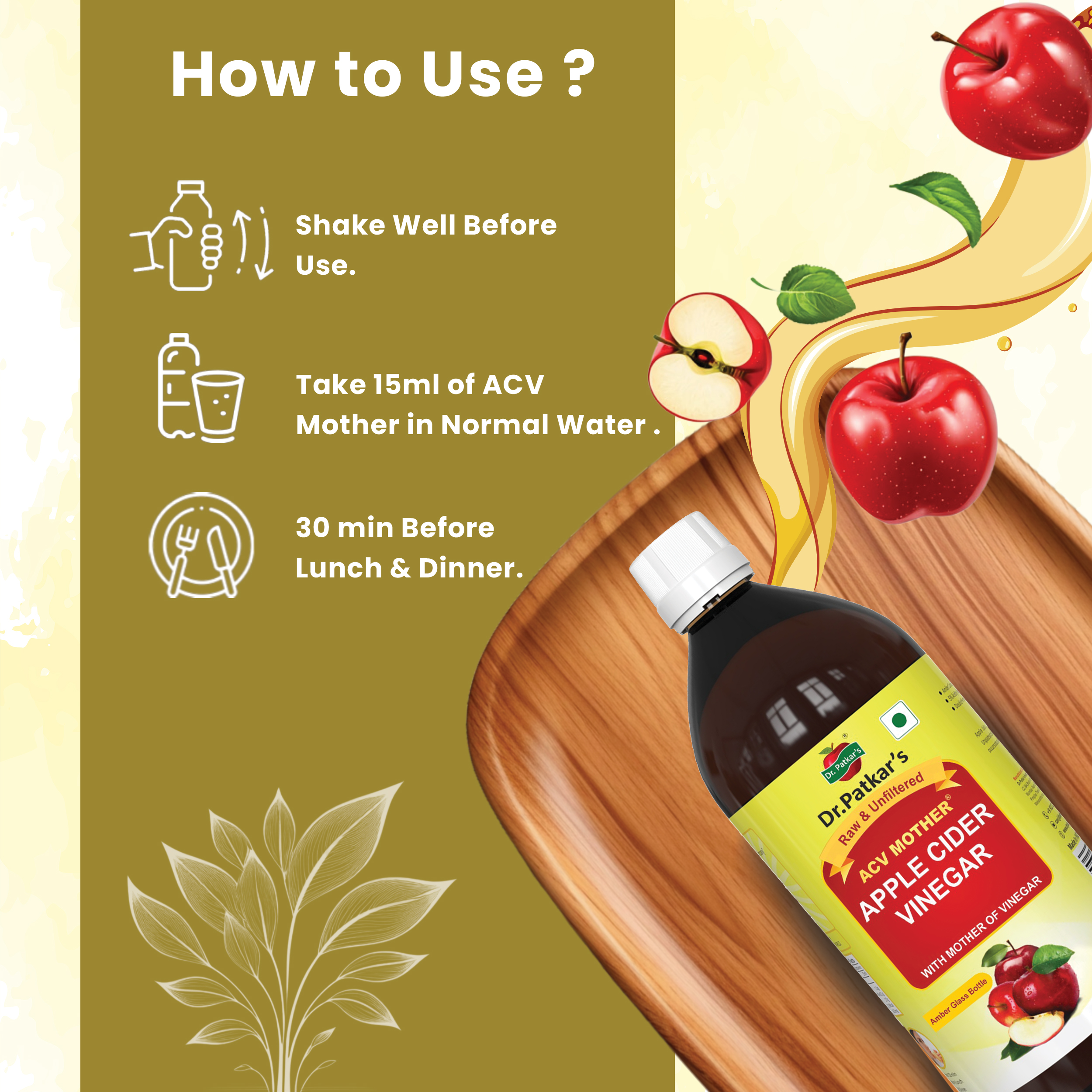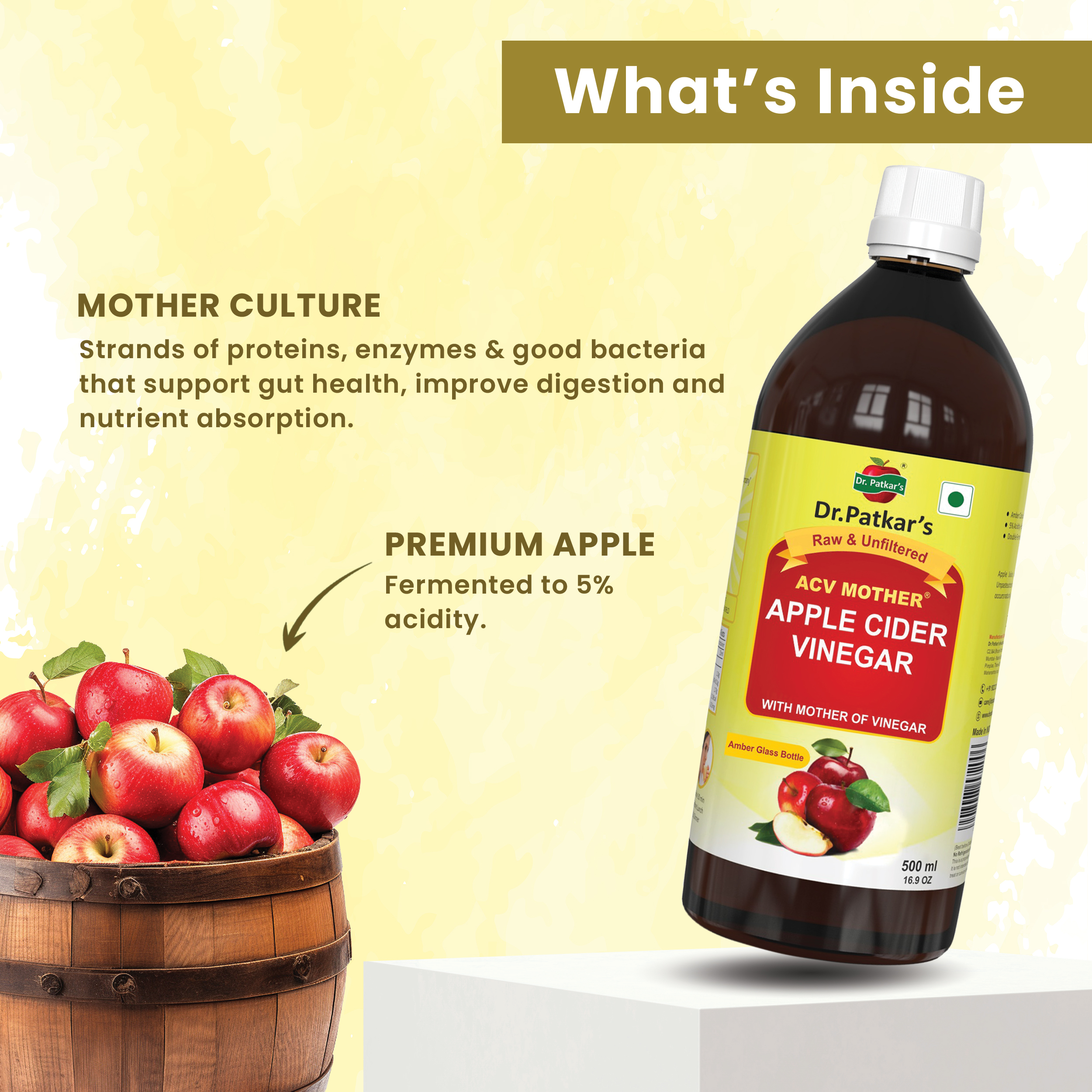 Dr. Patkar’s Apple Cider Vinegar with Mother Vinegar | Unfiltered & Undiluted | Suitable for Weight Loss & Improved Immunity (With Mother) 500ml