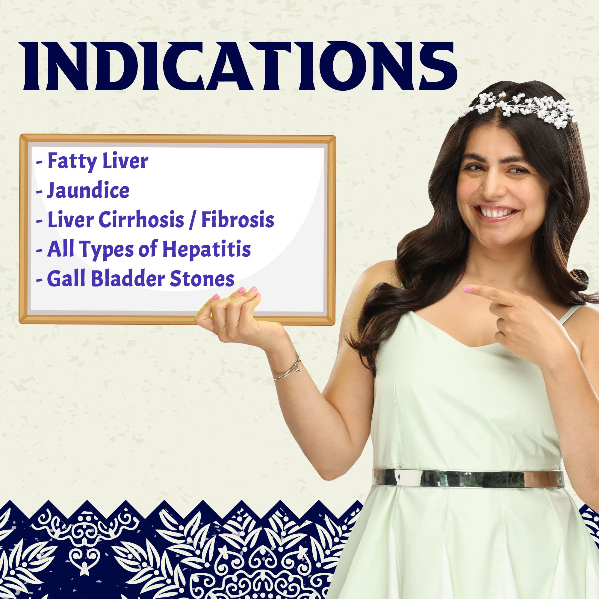 Liver Detox Formula contains various herbs such as Katuki (Picrorrhiza kurroa), Punarnava (Boerhavia diffusa), Kalmegh (Andrographis paniculata), Makoy (Solanum nigrum), Biranjasipha (Achillea millefolium-Yarrow), Jhavuka (Tamarix Gallica), Himsra (capparis spinosa), Haritaki (Terminalia chebula), Kasni (Cichorium intybus). It helps maintain proper levels of hormones in the liver. It helps cleanse and strengthen the liver, thereby helping in removing toxins from the body.